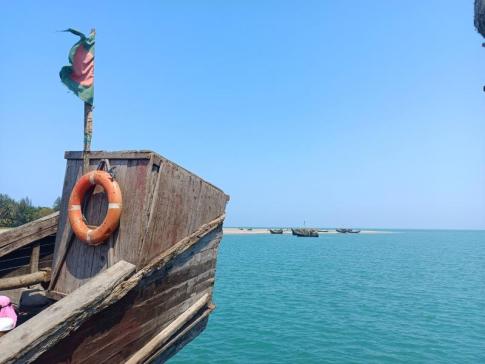 A következő kilométereken olyan gyönyörű partszakaszok tárultak elénk, hogy szinte nem hittünk a szemünknek. Hát tényleg ilyen is van Bangladesben? Csend, nyugalom, és mindez egy lenyűgöző természeti környezetben. A part néhol egészen elképesztő látványt nyújtott, amit csak fokozottak a vízen sorakozó, különleges formájú helyi halászbárkák. Volt mit bőven csodálni, fotózni – meg is álltunk többször, különösen ott, ahol apró csatornák folytak a tengerbe, és a felüljáróról magasabbról tárult fel a látvány.