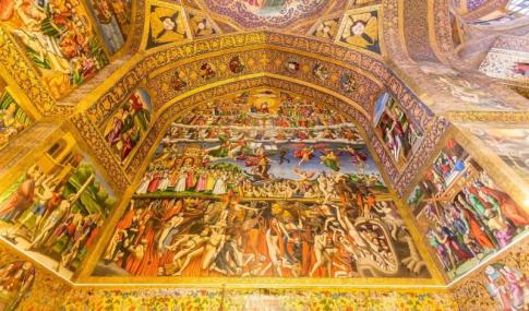 A palota főtermének falait monumentális falfestmények borítják, amelyek történelmi csatajeleneteket, udvari ünnepségeket és lakomának ábrázolatait mutatják be élénk színekkel és aprólékos részletességgel. Ezek a freskók nemcsak művészileg értékesek, hanem történelmi dokumentumok is, amelyek bemutatják a perzsa udvar pompáját és a korabeli viseleteket. A palota körül gyönyörű kert terül el ősi fákkal, rózsabokrokkal és sétányokkal, amely kellemes pihenőhelyet kínál a város forgatagából.
