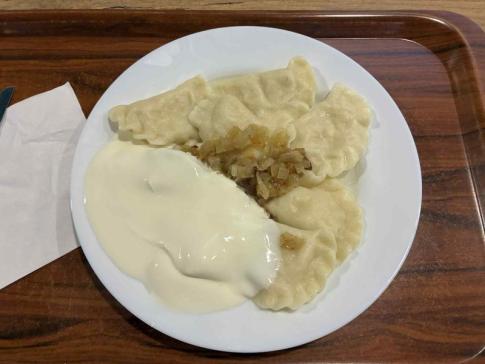 A szerző személyes kedvence:az ikonikus “tejbárokból egy: az elmaradhatatlan pierogival. Ez itt burgonyával volt töltve, rajta hagyma és tejföl. - L. Anikó fotói