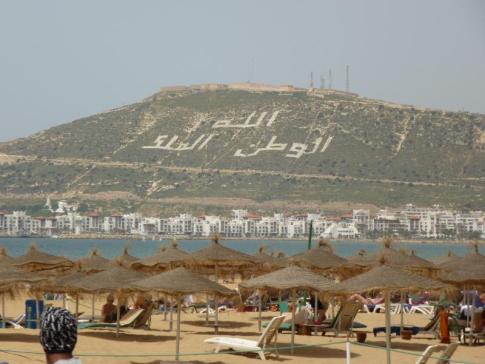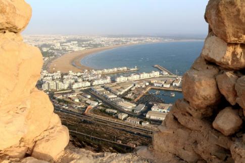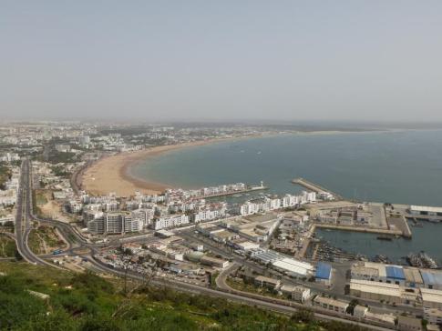 "A város leginkább nyaralóhelyként vált nevezetessé. Neve szó szerint gabonatárolót jelent. 9 km hosszú a plázs, folyamatosan bővítik és újítják fel, próbálnak a francia riviérához felzárkózni. A hegyen állt a város régen, de 1960-ban egy földrengés elpusztította. A hegy lábánál kezdték meg az újjáépítést és hozták létre az új Agadirt, a hegy pedig egy romos kilátóként funkcionál tovább. Mondhatni, hogy egy steril, turizmusra koncentrálódó várost hoztak létre, amely nem büszkélkedhet műemlékekkel és történelmi látnivalókkal. A híres felirat a hegy oldalán: Isten, Haza, Király.