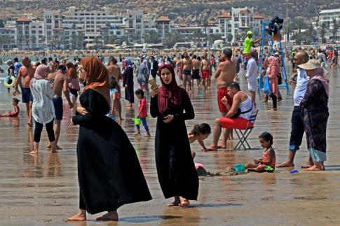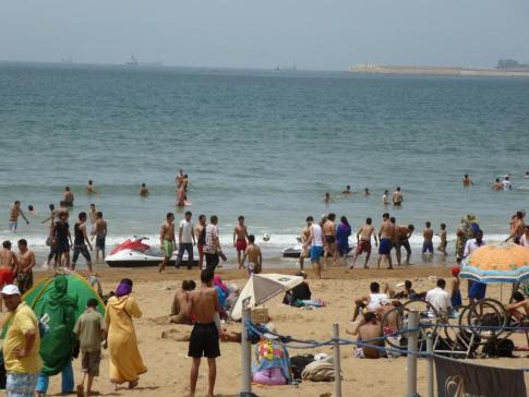 2. A központi strandszakaszon (közstrand) a hétvégéken túl nagy a tömeg (a mozlim nők felöltözve fürdenek)