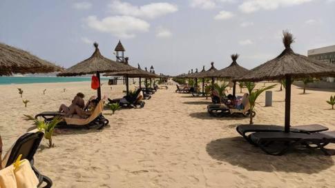 Praia de Chaves – Boa Vista egyik legismertebb üdülőzónája, ahol több nagy szállodakomplexum (pl. Riu Karamboa, Iberostar Club Boa Vista) tengerparti napozóhelyei találhatók. - M. M. fotója