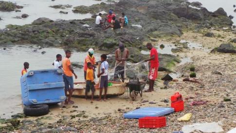 Sal szigetéről Boa Vistára készülünk átkelni. Mivel aznap nem indul repülőjárat a két sziget között (ez továbbra sem mindennapos, főként a kisebb szigetek közötti belföldi járatok szűkössége miatt), a tengeri utat választjuk. Vitorlás híján hamarosan egy viharvert halászhajó fedélzetén találjuk magunkat. A hajó már hosszú évtizedek óta szeli a hullámokat; rozoga külseje és egyszerű felszerelése árulkodik arról, hogy turistát aligha látott korábban. A halszagú hátsó fedélzet sós padkáin ülve próbálunk ráhangolódni a helyi halászélet világára. Errefelé a tonhal a legkeresettebb zsákmány, de akadnak cápára szakosodott halászok is, akiket útközben látunk elindulni a nyílt víz felé.