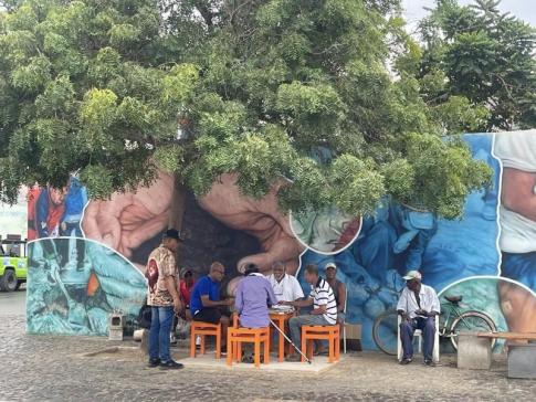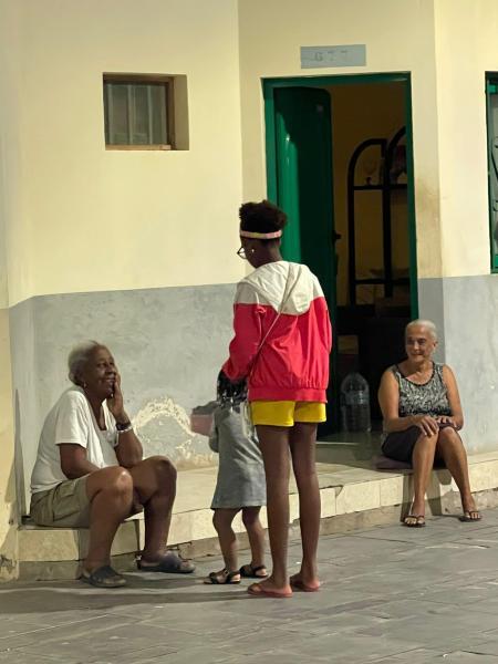 Mivel egyelőre nincs más tervünk, elfogadjuk a meghívást. Kiderül, hogy Ibrahim remek mesélő: tőle tudjuk meg, hogy a szigeten körülbelül húszezren élnek, többségük keresztény, de vannak muszlimok is. A házak egyszerűek, mégis élénk színekben pompáznak – akad köztük kék, zöld, sárga, sőt rózsaszín is. Bekukkantunk az iskolába is, bár szombat lévén zárva találjuk. Ibrahim, mint sok helyi, beszél angolul, bár kissé töredezetten – franciául jobban boldogul. Tekintve, hogy mindenki beszél portugálul, a helyiek egymás között pedig kreolul társalognak, ez így is figyelemre méltó.
