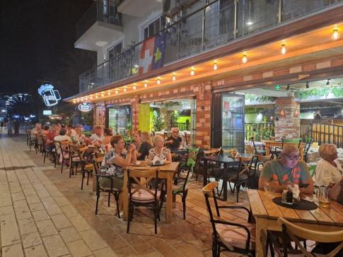 2024-ben Saranda továbbra is az Albán Riviéra egyik legkedveltebb üdülőhelye, ahol a modernitás és a hagyományos balkáni életérzés találkozik. Mi a Paradise étteremnél álltunk meg a tengerparti sétány elején, ahol gyakran ebédeltünk. Az étterem elhelyezkedése kiváló: a tengerre néző terasz csodálatos kilátást nyújt, és maga az étterem is kellemes hangulatot áraszt. Az ételeik még mindig finomak, és a választék ugyan korlátozott, de a helyi specialitásokkal, például a butrinti tóban tenyésztett kagylóval továbbra is népszerűek. Az árak valamelyest emelkedtek az elmúlt években, de még így is kedvezőek, egy menü most körülbelül 10 euróba kerül, amely tartalmaz egy főételt, köretet (rizs vagy burgonya), salátát és desszertet.