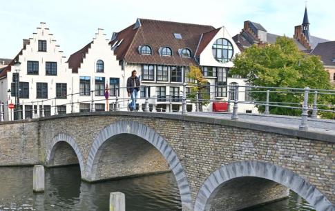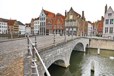 Az Augustijnenbrug nevű kőhíd, ami a Spiegelrei csatornát íveli át. A híd környéke tipikusan bruges-i hangulatú: csipkés oromzatú házak, vörös tetők és csendes vízparti sétányok jellemzik. - Elter Karcsi fotója