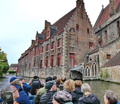 Brugge-ben 2025-ben is kötelező program egy hajókázás a csatornákon, hiszen a várost egészen más nézőpontból mutatja meg. A hajók 15–20 percenként indulnak, több kisebb kikötőből, de mind ugyanahhoz a hajótársasághoz tartoznak, és nagyjából azonos útvonalat járják be. A jegy ára jelenleg 15 euró felnőtteknek. A csónakok csak akkor indulnak, ha megteltek, ezért tanulság: ne üljünk be elsőnek, mert akkor a súlyelosztás miatt a hajó végébe ültetnek, ahonnan előre legfeljebb a többiek hátát lehet nézni, oldalra kicsit, hátra viszont szinte semmit – hacsak nem vállaljuk a nyaktörő pózokat.