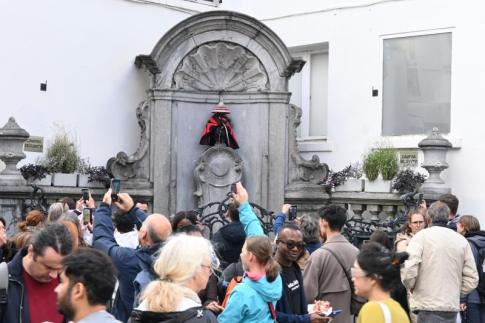 Nem is igazán értjük, miért ez a szobor Brüsszel fő nevezetessége, de ez az. Kicsi, aranyos persze. Mindig nagy itt a tömeg, amikor átöltöztetik, külön eljönnek a helyiek is lefotózni különböző ruháiban. Érdemes megkeresni a pisilő kislányt és a kutyust is, ha valakinek nagyon bejönnek ezek a szobrok.