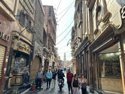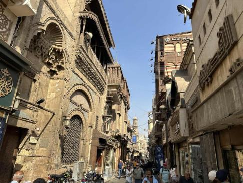 Külön említést érdemel az Al-Muʿizz utca is, amely a középkori Kairó egyik legfontosabb történelmi tengelye. Ez a sétára hívó, macskaköves utca tele van régi palotákkal, medreszékkel és díszes homlokzatú mecsetekkel. Gyalog végigsétálva olyan, mintha egy élő szabadtéri múzeumban járna. Este különösen hangulatos, amikor a homlokzatokat meleg fények világítják meg.