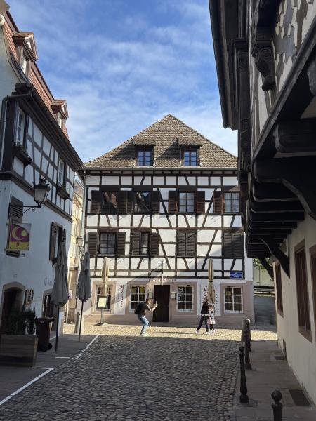 A Petite France negyedben a Maison des Tanneurs (Cserzővargák háza), amely az 1570-es évekből származik. Eredetileg a bőrök kikészítésével foglalkozó céh székháza volt, ma pedig az egyik legismertebb elzászi étterem működik benne, ahol klasszikus fogásokat – például choucroute garnie-t vagy tarte flambée-t – szolgálnak fel. - A. Zs. fotója