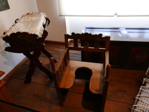 Egy régi gyermek bili szék (franciául: chaise percée d’enfant), és egy bölcső - U. B. fotója