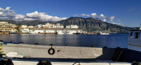 A kalamatai kikötő a háttérben magasodó Tajgetosz-hegységgel - O. M. fotója