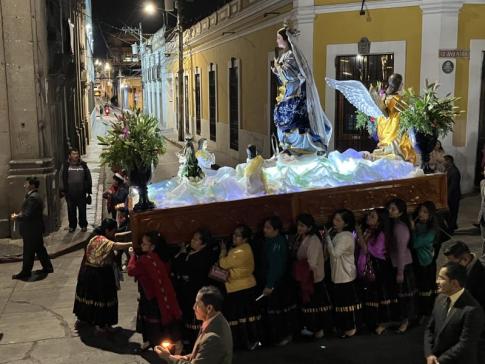 Quetzaltenango-ban a Szeplőtelen Fogantatás ünnepi (Inmaculada Concepción) körmeneten a Szűz Máriát magas sarkú cipőben cipelő nők - K. Kriszta fotója (december 8.)