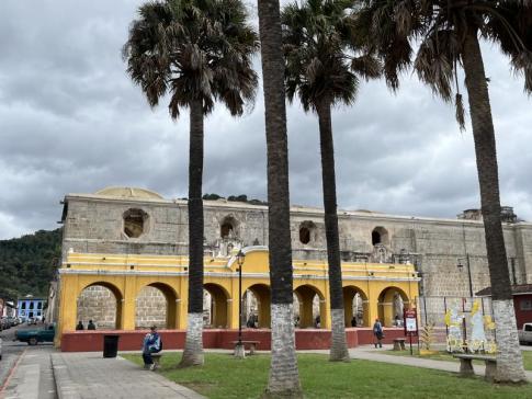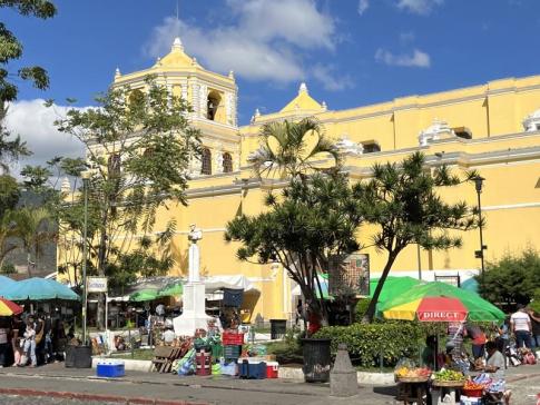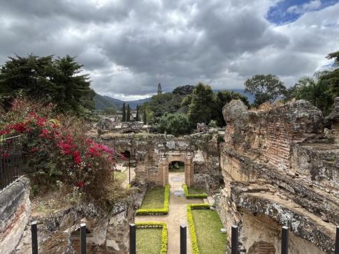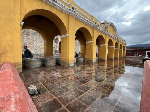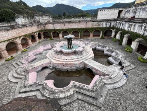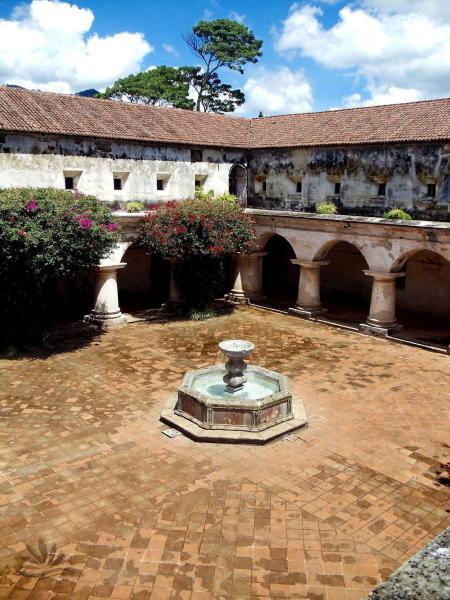A romos templomok közül felkerestem a Santa Clara-t (1700), a San Jeronimo-t (1675) és a Recolección-t. Utóbbi a leglátványosabb – a földrengés több méter vastag falait szétrombolta, de a nagy boltíves kapu megmaradt. A belépő mindenhova 6 dollár volt, így a többit kihagytam. A főtéren található a Kapitányság palotája, a Városháza és egy szökőkút (1773), melynek tetején virágokkal díszített szirénák állnak, egyikük melléből víz spriccel.