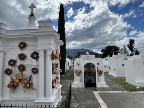 Fotózás szempontjából a Cementerio General különösen hálás téma, hiszen a fehér síremlékek és a háttérben magasodó vulkán szépen kiegészítik egymást.