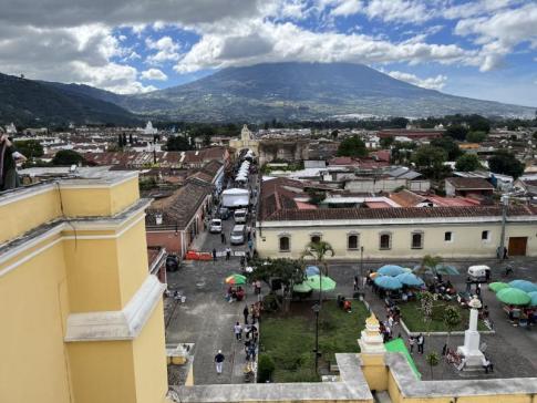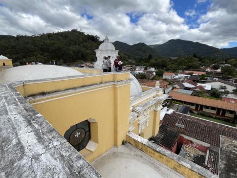 Fel lehet menni - ÉS ÉRDEMES! - 35 quetzalért a templom tetejére / harangtornyába (azotea), ahonnan gyönyörű panoráma nyílik Antiguára és a környező vulkánokra. Ez a látogatható tetőterasz az egyik legnépszerűbb kilátópont a városban.Kilátás fentről - K. Kriszta fotója