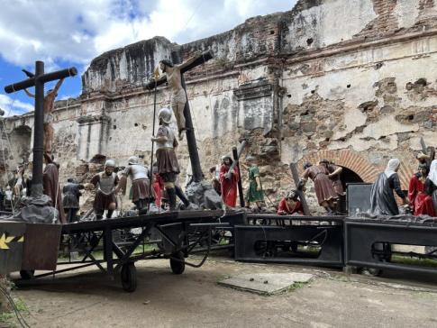 Ez nagypénteki (Semana Santa) körmenethez tartozó díszlet, pontosabban processziós szoborcsoport (andas), amely Jézus szenvedéstörténetét ábrázolja. Antiguában a húsvéti időszak rendkívül fontos, ilyenkor ezeket a nagy, kerekeken mozgatható emelvényeket templomromokban vagy udvarokban tárolják és készítik elő a látványos vallási körmenetekhez- K. Kriszta fotói