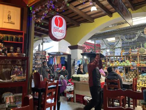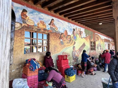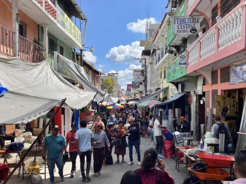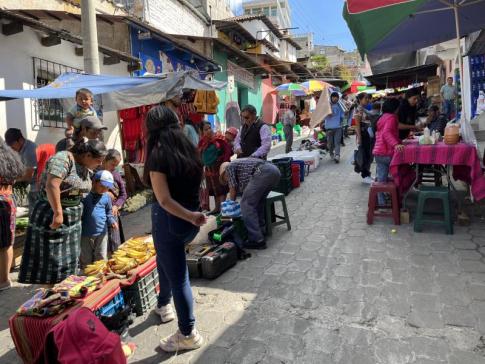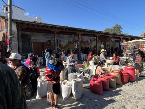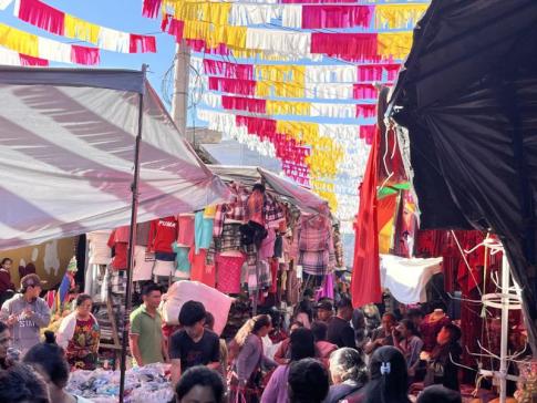 A központi piacon alkudozni a kézzel hímzett huipil blúzokra...