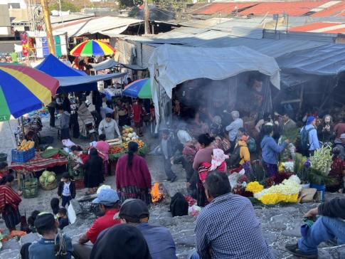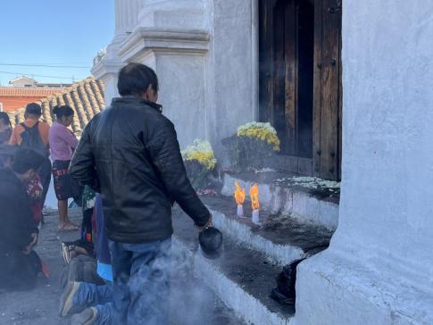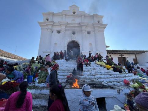A fotón maja tűzszertartás (spanyolul ceremonia maya del fuego) látható, amelyet Chichicastenango területein a helyiek ma is rendszeresen végeznek. Ez a spirituális rituálé az ősi maja vallási hagyományok része, és célja a természet erőivel való kapcsolat megújítása, illetve áldás, gyógyulás vagy hálaadás kérése az istenektől.