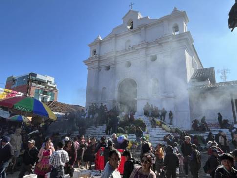 A Szent Tamás templom lépcsőin a maja rituálékat és tömjénfüstöt csodálni...