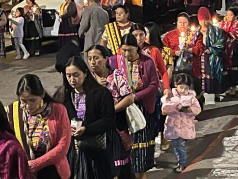 Quatzeltenango-ban a körmeneten a kislány inkább a mobilozásra összpontosít - K. Kriszta fotója