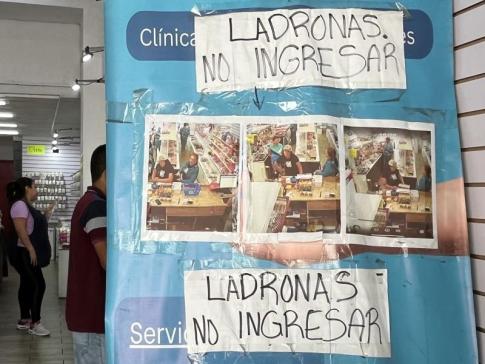 A feliratok: “LADRONAS. NO INGRESAR” azt jelentik, hogy „Tolvajok. Ne lépjenek be.” A plakátra a bolt biztonsági kamerájának felvételei vannak ráragasztva két női vásárlóról, akiket az üzlet – saját megfogalmazása szerint – lopással gyanúsít - K. Kriszta fotója