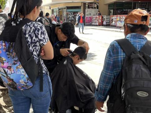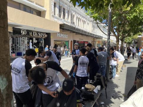 A belvárosban fodrásztanoncok ingyenesen vágnak hajat az utca szélén - K. Kriszta fotója