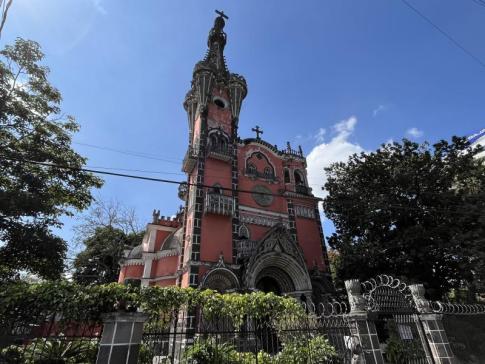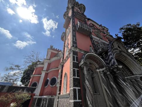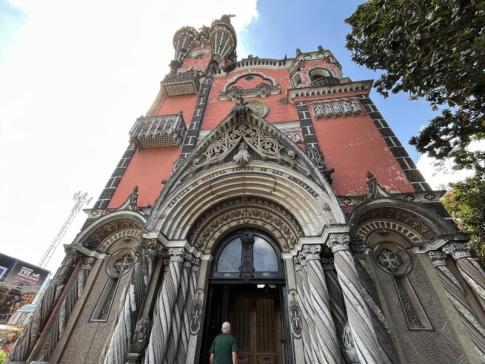 Az Avenida Reforma felső szakaszához közel, a ruta 6 környékén találtunk rá véletlenül erre a gyöngyszemre: Guatemala City egyik legkülönlegesebb temploma, a Templo de Nuestra Señora de las Angustias Yurrita- A stílusa egy eklektikus, neogótikus és neoromán elemeket ötvöző különleges keverék, amelyet a piros–fekete külső még erősebben kiemel - K. Kriszta fotói