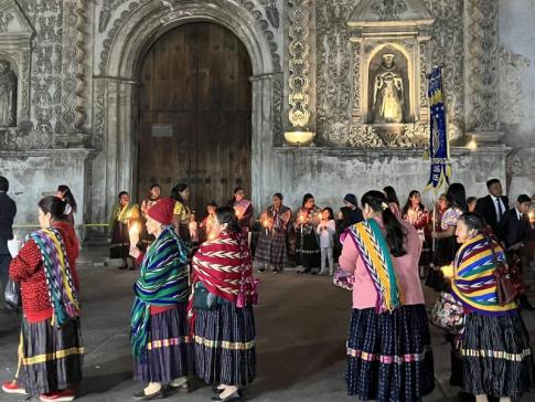 A belső tér szerényebb, de nem kevésbé különleges: a szentek ruhái élénk maya textíliákból készültek, az oltáron gyertyák és virágok mellett kukoricacsövek és helyi gyümölcsök sorakoznak. Sajnos a templom karbantartása nem követi művészeti jelentőségét - a festék több helyen mállik, nedvesség okozta foltok csúfítják a falakat, és a tetőszerkezet is javításra szorul. A turisták özönlenek fotózkodni, de sokan nem tanúsítanak kellő tiszteletet: hangoskodnak mise közben, vakuval fényképeznek, és megfogdossák a szobrokat.