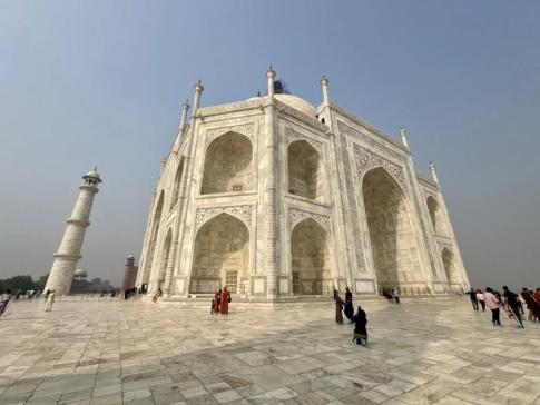 A Taj Mahal körüli területen a disszonáns látványt inkább a turisták jelentik, akik néha megfeledkeznek arról, hogy egy szakrális helyen járnak. Az indiai látogatók sokkal inkább tiszteletteljesen viszonyulnak a hely szelleméhez, és ez érezhető az atmoszférán. Ahhoz, hogy igazán átélhesd a hely monumentalitását és szellemét, érdemes legalább 4-5 órát eltölteni a hatalmas parkban, és alaposan bejárni minden szegletét. Csak így érezheted meg igazán a tér és az arányok varázsát.