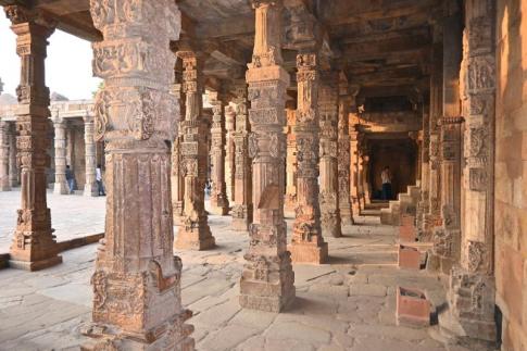 A Qutb-komplexumon belül a Quwwat-ul-Islam mecset a díszes, hindu–dzsain templomokból átemelt faragott oszlopaival - Elter Karcsi fotója