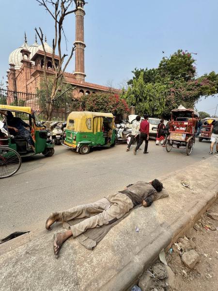 Delhiben ez a kettősség már az első pillanatban szembeötlő. A nyomor és a fényűzés döbbenetes közelségben létezik egymás mellett: leharcolt riksák és poros buszok mellett méregdrága luxusautók száguldanak; fényűző hotelek bejáratánál őrök állnak, néhány méterrel arrébb pedig koldusok kuporognak. A város egyik leghíresebb étterme, a legendás Bukhara – ahol olyan vendégek is megfordultak, mint Bill Clinton, Barack Obama, Tony Blair vagy Arnold Schwarzenegger – környékén gyerekek kéregetnek az utcán.
