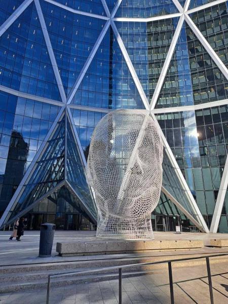 A Wonderland Sculpture Calgary egyik legfurcsább és egyben legikonikusabb alkotása, egy hatalmas, hófehér emberi fej, amely a Bow folyó partján, a Princes Island közelében magasodik fel 12 méter magasságban. Ez Jaume Plensa spanyol művész 2013-as alkotása, amelyet Calgary 2012-es árvize utáni újjáépítési program részeként készítettek, és azóta a város egyik legtöbbet fotózott látnivalója lett. A szobor egy fiatal lány arcát ábrázolja, és különösen lenyűgöző este, amikor belülről kivilágított LED-fények varázslatos hangulatot teremtenek, szinte álmodozóvá téve az egész környéket. A legtöbb turista itt készíti el a kötelező Calgary-szelfit, bár őszintén szólva ez inkább Instagram-csapda, mint művészeti élmény, de azért tényleg impozáns. Praktikus tanács: napközben is szép, de este sokkal látványosabb a kivilágítás miatt, körülbelül napnyugta után egy órával a legszebb a látvány. A szobor könnyen megközelíthető gyalog a belvárosból vagy biciklivel a Bow River Pathway-en, és ingyenes parkolóhelyek vannak a közelben. Ne tervezzetek túl sok időt rá, 15-20 perc bőven elég a körülnézéshez és néhány fotó elkészítéséhez, de ha már erre jártok, érdemes összekapcsolni a Prince's Island Park látogatásával. Ez az egyik dolog Calgary-ban, ami tényleg egyedi és sehol máshol nem látható, szóval megéri a gyors kitérőt, még ha nem is vagytok nagy művészetrajongók.