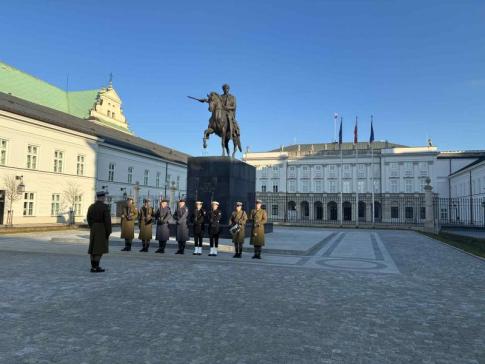 Díszőrség a palota (Pałac Prezydencki) előtti téren a Krakowskie Przedmieście utcánál - L. Anikó fotója