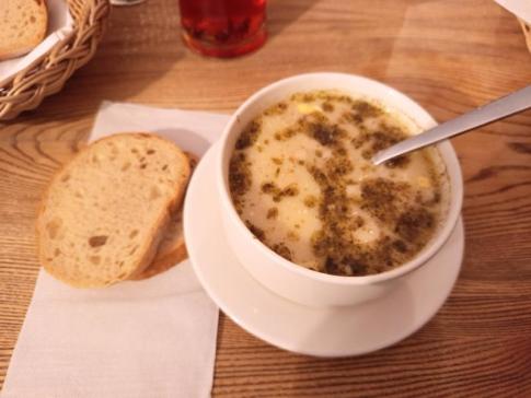Zupa czosnkowa, vagyis lengyel fokhagymaleves, burgonyadarabokkal és fűszernövényekkel - F. Cs. fotója