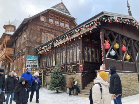 A tömeg elviselhető...teljesen. A lovas szánt ne hagyjátok ki . És a város felett a hegytető igazi csoda este. Felvonóval fel tudtok menni. A piac sarkán a vendéglő , pazar . A sétálóutcán több vendéglőben is van magyar étlap . (2023)