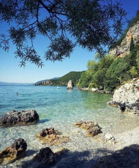 Ez az Ohridi-tó partja, Ohrid város környékén – kristálytiszta vizével és sziklás öbleivel Macedónia egyik legszebb természeti kincse. - M. A. fotója