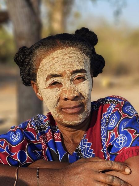 Néhány madagaszkári nő hagyományos, sárgás színű port, úgynevezett masonjoanyt visel az arcán. Ez agyagból és helyi növényi összetevőkből készül, és a bőrt védi a napsütéstől, miközben hűsíti is — hasonlóan ahhoz, ahogyan a mianmari nők használják a thanakát. - T. G. fotója