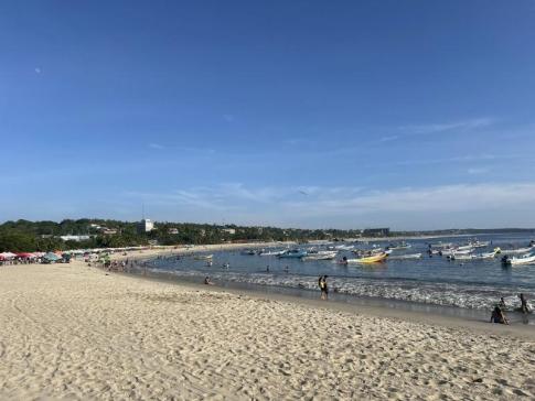 A parton halászhajók (pangas) sorakoznak a vízben – ez a Playa Principal egyik legfőbb ismertetőjele, itt működik a helyi halászkikötő. - Földvári András fotója