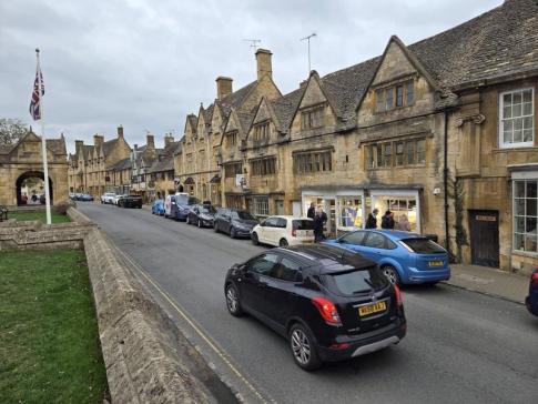 Ez a fotónk az angliai Cotswolds vidék egyik jellegzetes falujában készült, mégpedig Chipping Campdenben, amely Gloucestershire megyében, a Midlands délnyugati peremén található. A fotón látható aranyszínű mészkőből épült házsor, az íves kőkapu (Market Hall) és az Union Jack zászló mind a falu központi utcáját, a High Streetet ábrázolják. Chipping Campden az egyik legszebb Cotswold-falu, híres a 17. századi házairól, a kézműves hagyományairól és arról, hogy innen indul a Cotswold Way nevű gyalogtúra-útvonal Bath felé. - K. P. fotója