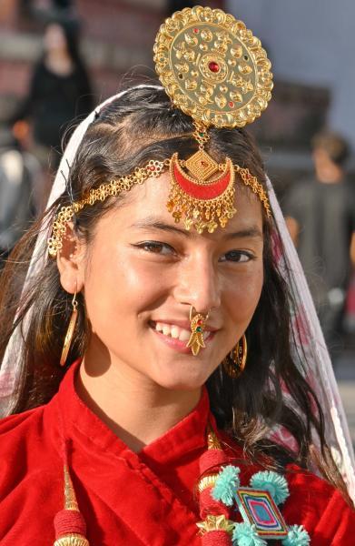 Nepáli nő látható hagyományos Newari ünnepi viseletben és ékszerekben - Elter Karcsi fotója