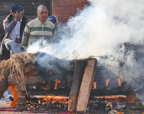 Hindu halottégetés a Bagmati folyó partján, a híres Pashupatinath templom hamvasztóhelyeinek egyikén - Elter Karcsi fotója
