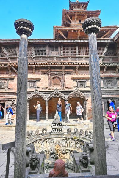Ez a Sundari Chowk belső udvara Patan Durbar Square-ben, középen a híres Tusha Hiti királyi fürdővel, amelyet a 17. században faragtak ki. A szentélyekkel és mitikus figurákkal díszített mély medence a Malla-királyok egykori rituális fürdőhelye volt. - Elter Karcsi fotója