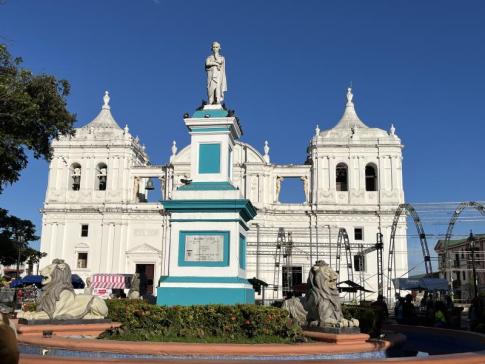 A Basílica de la Asunción UNESCO kulturális világörökségi helyszín - (A katedrális előtti emlékmű Máximo Jerez (1818–1881) nicaraguai politikusnak és diplomatának állít emléket) - K. Kriszta fotója