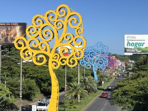 Az Avenida Bolívar meglepően rendezetté vált: az út mentén szokatlan sárga fémfák sorakoznak, amelyek spirálban végződő ágakkal próbálják megidézni Gustav Klimt életfáit. Ezek a furcsa installációk állítólag a szandinisták politikai szimbólumaivá váltak a 20. század elejétől kezdve. Hogy a Klimt-örökösöktől kértek-e engedélyt a motívumra, azt nem tudni, az viszont biztos, hogy darabjuk 25 ezer dollárba került, és a teljes projekt összesen 3,3 millióba. 2025-ben is nehéz nem felesleges pénzszórásként látni ezt egy ilyen szegény országban.