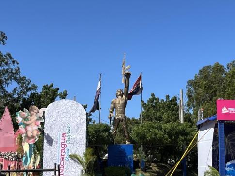 A karácsonyra készülő, Szűz Máriás installációk sűrűjében a sandinista forradalom ismeretlen harcosát jelképező szobor (Monumento al Soldado de la Revolución): a kidolgozott felsőtestű gerilla egy AK-47-es gépkarabélyt tart a magasba, a másik kezébe kapát tart, hogy a földművesek forradalmi hevületét is ösztönözze. - K. Kriszta fotója