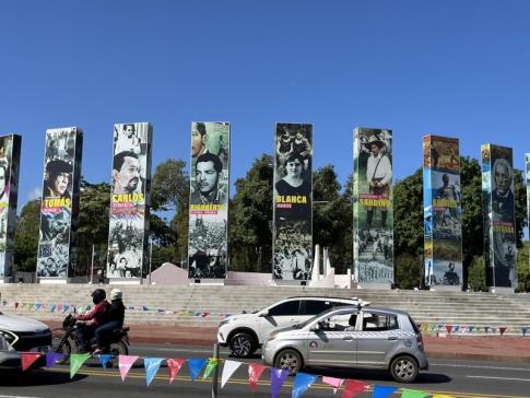 Ez az installáció Managua „Plaza de la Revolución” környékén található, és Nicaragua történelmének fontos alakjait ábrázolja, főként a sandinista narratívához igazodva. Sandino persze köztük van. - K. Kriszta fotója