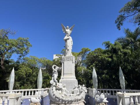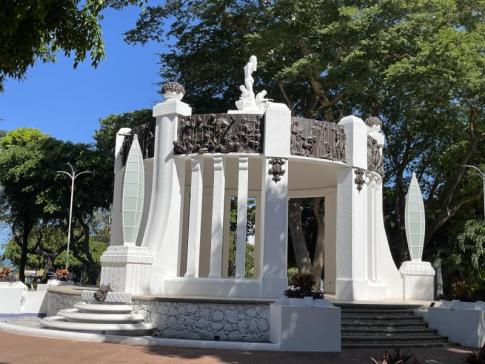 A túl sok metafóra miatt tán eléggé csicsás lett, a Rubén Darío alakja fölötti angyalszerű figurával (a múzsa ) és a talapzat körüli sellőkkel, kagylókkal, gyermekszerű alakokkal - K. Kriszta fotója