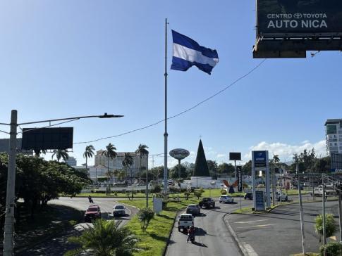A nicaraguai zászló kék és fehér csíkjai Közép-Amerika két óceánjára közte a béke (fehér) tisztaságára utalnak, középen pedig az ország háromszög alakú címerét látni. A címeren öt vulkán, a szabadságsapkát tartó sugárzó nap és a „República de Nicaragua – América Central” felirat jelenik meg. - K. Kriszta fotója
