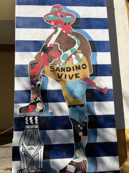 Rubén Darío – Nicaragua nemzeti költője, a modernizmus irodalmi irányzatának vezéralakja.Jobb oldalon: Augusto César Sandino – a nemzeti ellenállás legendás vezetője, jellegzetes kalapjával és parasztforradalmári viseletével. Formája szinte minden nicaraguai köztéri szimbolikában jelen van. - K. Kriszta fotója